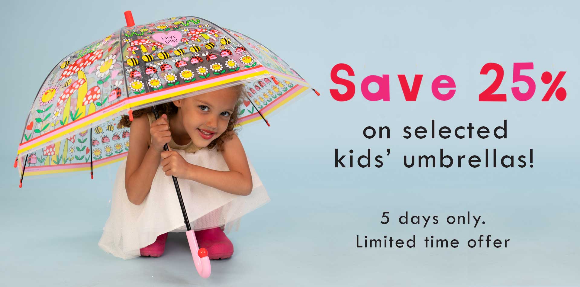 Colorful and fun umbrellas designed to keep kids dry and happy. Perfect for rainy days.