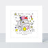 A playful greetings card for wishing them luck on their first day at school! Featuring colourful illustrations of a rucksack and school items, each card is framed and finished with deep embossing. Paired with a bright envelope.