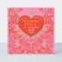 An eye-catching Christmas card for a wife with hand- drawn text, gold foil details and vibrant colours. The detailed illustrations and patterns surround a die-cut heart shaped attachment which is hand applied to the centre of the card. Supplied with red envelopes.
