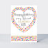 A striking contemporary birthday card for a very special Grandma focussing on combining graphic artwork with embossing effects, gold foil and neon inks. This card is printed on textured board and supplied with a bespoke printed envelope.