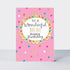 A striking contemporary birthday card for a wonderful Mum, focussing on combining graphic artwork with embossing effects, gold foil and neon inks. This card is printed on textured board and supplied with a bespoke printed envelope.