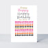 A striking contemporary birthday card, focussing on combining graphic artwork with embossing effects, gold foil and neon inks. This card is printed on textured board and supplied with a bespoke printed envelope.