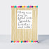 A striking contemporary birthday card, focussing on combining graphic artwork with embossing effects, gold foil and neon inks. This card is printed on textured board and supplied with a bespoke printed envelope.