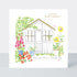 This charming floral birthday card with a summerhouse design is delicately finished with hand-applied jewels and shiny gold foiling. Printed on textured board to add to the painterly feel and supplied with complementary coloured envelope