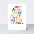 This colourful colourful contemporary birthday card for an auntie is finished with gold foil and supplied with a neon pink envelope.