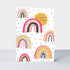 with gold foil and bright neon pink. Finished with a neon pink or patterned envelope. This card features a bright golden rainbow patter