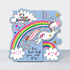This fun children's birthday card comes with a bright, hand painted unicorn design. This card is folded with a reverse fold and it features a playful die-cut and cut-out shape which compliments and interacts with the design. It is printed on textured board with vibrant inks and finished with hot gold foil. Supplied with a coordinating coloured envelope.