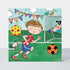 A children's card, gift and puzzle in one! This fun Footballer & Dogs Birthday card comes as a die cut jigsaw and also has a smaller greeting card in the same design in which to write your message. Supplied with a supportive backing board and a white envelope. 30 pieces.