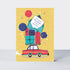 This bright and contemporary male birthday card with a fabulous illustrated car theme is a smaller card with an appealing combination of bold illustrations mixed with a sparkling of gold flitter. Each card features a cute mini envelope incorporated into the design and has a separate tiny note inserted into the envelope and attached with a sticky foam pad. Supplied cello wrapped and come complete with a special duck-egg blue patterned envelope.