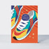This bright and contemporary male birthday card with a fabulous illustrated trainers theme is a smaller card with an appealing combination of bold illustrations mixed with a sparkling of gold flitter. Each card features a cute mini envelope incorporated into the design and has a separate tiny note inserted into the envelope and attached with a sticky foam pad. Supplied cello wrapped and come complete with a special duck-egg blue patterned envelope.