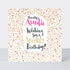 A celebratory, confetti design for a lovely Auntie! A bold, eye catching Birthday card from our very popular range Pink Fizz, featuring hot pink neon ink, it is printed on textured board and finished with sparkling gold flitter. Supplied cello wrapped with a matching envelope.