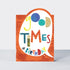 This vibrant and bold graphic card is perfect for a Tween boy. With a cool 'Good Times Birthday' caption printed with neon inks and finished with gold flitter, this card features a die-cut top and collaged wording appealing to this age group