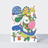This birthday card for a boy with a dinosaur theme is bound to get you jumping for joy! This is an eye-catching, die-cut card finished with shimmering silver holographic foil and pops of deep embossing. Supplied with a complementary envelope.