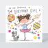 This uplifting children's birthday card is printed with vibrant inks on textured board. Featuring a cute ballerina character wearing hand-applied 3D die-cut T shirt, with the caption Star of the Show. This card is finished with gold foil and embossed. Supplied with a coloured envelope