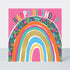 A bright and contemporary birthday card that combines tropical florals with bold hand drawn typography. Featuring a pop of neon pink ink and touches of shimmering gold foil for a beautifully striking finish. Incorporates a rainbow design with the caption Happy Birthday to you. Cello wrapped with complementary coloured envelope.
