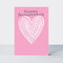A striking contemporary Happy Anniversary card focussing on combining graphic artwork with embossing effects, gold foil and neon inks. This card is printed on textured board and supplied with a bespoke printed envelope.