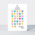 A striking contemporary New Baby card focussing on combining graphic artwork with embossing effects, gold foil and neon inks. This card is printed on textured board and supplied with a bespoke printed envelope.