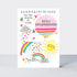 A soft and sweet card to congratulate on a new baby granddaughter. Printed on textured board and featuring hand-painted artwork, emboss and a hand-applied jewel. Supplied with a pretty bespoke cloud patterned envelope.