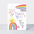 A soft and sweet thank you card. Printed on textured board and featuring hand-painted artwork, emboss and a hand-applied jewel. Supplied with a pretty bespoke cloud patterned envelope.