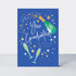 A sparkly academic card with colourful and bold illustrations. Paired with BIODEGRADABLE gold flitter and a multi- coloured stripy envelope. Graduation.