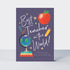 A sparkly academic card with colourful and bold illustrations. Paired with BIODEGRADABLE gold flitter and a multi- coloured stripy envelope. Thank you Teacher.
