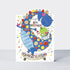 This fun You're a Big Brother card in a fabulous dinosaur family design is printed with neon inks on textured board. It is embellished with sparkling gold glitter and features a die-cut top. Supplied cello wrapped with a brightly coloured envelope.