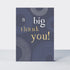 A contemporary thank you card printed on textured board, supplied with a mustard patterned envelope and finished with luxurious gold foiling