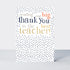 A contemporary thank you teacher card printed on textured board, supplied with a mustard patterned envelope and finished with luxurious gold foiling