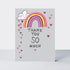 A zero plastic range of our popular mini notecards. Each sturdy little box contains 10 vibrant notecards which are printed on textured board, and 10 white envelopes. The pack features a gorgeous 'Thanks so much' rainbow design.