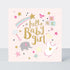 This beautiful 'Baby Girl' card combines pretty baby themed icons with bold hand drawn typography for a fresh, contemporary feel. This card is delicately finished with hand applied shimmering jewels, gold foiling and tasteful embossing. Supplied with a high quality white envelope.