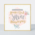 This beautiful 'Mum and Dad Silver Anniversary' card combines pretty florals with bold hand drawn typography for a fresh, contemporary feel. This card is delicately finished with hand applied shimmering jewels, gold foiling and tasteful embossing. Supplied with a high quality white envelope.