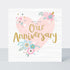 This beautiful 'Our Anniversary' card combines pretty florals with bold hand drawn typography for a fresh, contemporary feel. This card is delicately finished with hand applied shimmering jewels, gold foiling and tasteful embossing. Supplied with a high quality white envelope.