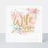 This beautiful 'Wife Golden Anniversary' card combines pretty florals with bold hand drawn typography for a fresh, contemporary feel. This card is delicately finished with hand applied shimmering jewels, gold foiling and tasteful embossing. Supplied with a high quality white envelope.
