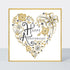 This Happy Anniversary card incorporating an elegant floral heart theme in a striking and stylish monochrome design is printed on beautiful textured board and embellished with sophisticated hot gold foil. Supplied cello wrapped with a bespoke black and white polka dot envelope