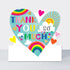 This eye-catching thank you card features die-cut front and back pages with illustration on both sides of the card, creating a double layered image. Printed on textured board with vibrant neon inks, they are finished with hot gold foil.