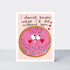 A delightful valentine's card with an 'I donut know what I'd do without you' pun, featuring a fun illustrated donut covered in sprinkles. This charming card comes in a small format, perfect for a sweet gesture. A bright, vibrant colour scheme and sweet designs add a wonderful touch to each card. Printed on textured board with vibrant inks and finished with spot UV highlights. Size: 130mm x 100mm. Finish: spot UV. Supplied with a red envelope.