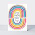 A striking contemporary birthday card, focussing on combining graphic artwork with embossing effects, gold foil and neon inks. This card is printed on textured board and supplied with a bespoke printed envelope.