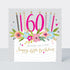 This beautiful '60th Birthday' card combines pretty florals with bold hand drawn typography for a fresh, contemporary feel. This card is delicately finished with hand applied shimmering jewels, gold foiling and tasteful embossing. Supplied with a high quality white envelope.