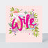 This beautiful 'Wonderful Wife' birthday card combines pretty florals with bold hand drawn typography for a fresh, contemporary feel. This card is delicately finished with hand applied shimmering jewels, gold foiling and tasteful embossing. Supplied with a high quality white envelope.