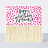 A pretty card featuring the phrase 'Happy Birthday Gorgeous!'. A bold, eye catching card from our very popular range Pink Fizz, featuring hot pink neon ink, it is printed on textured board and finished with sparkling gold flitter. Supplied cello wrapped with a matching envelope.